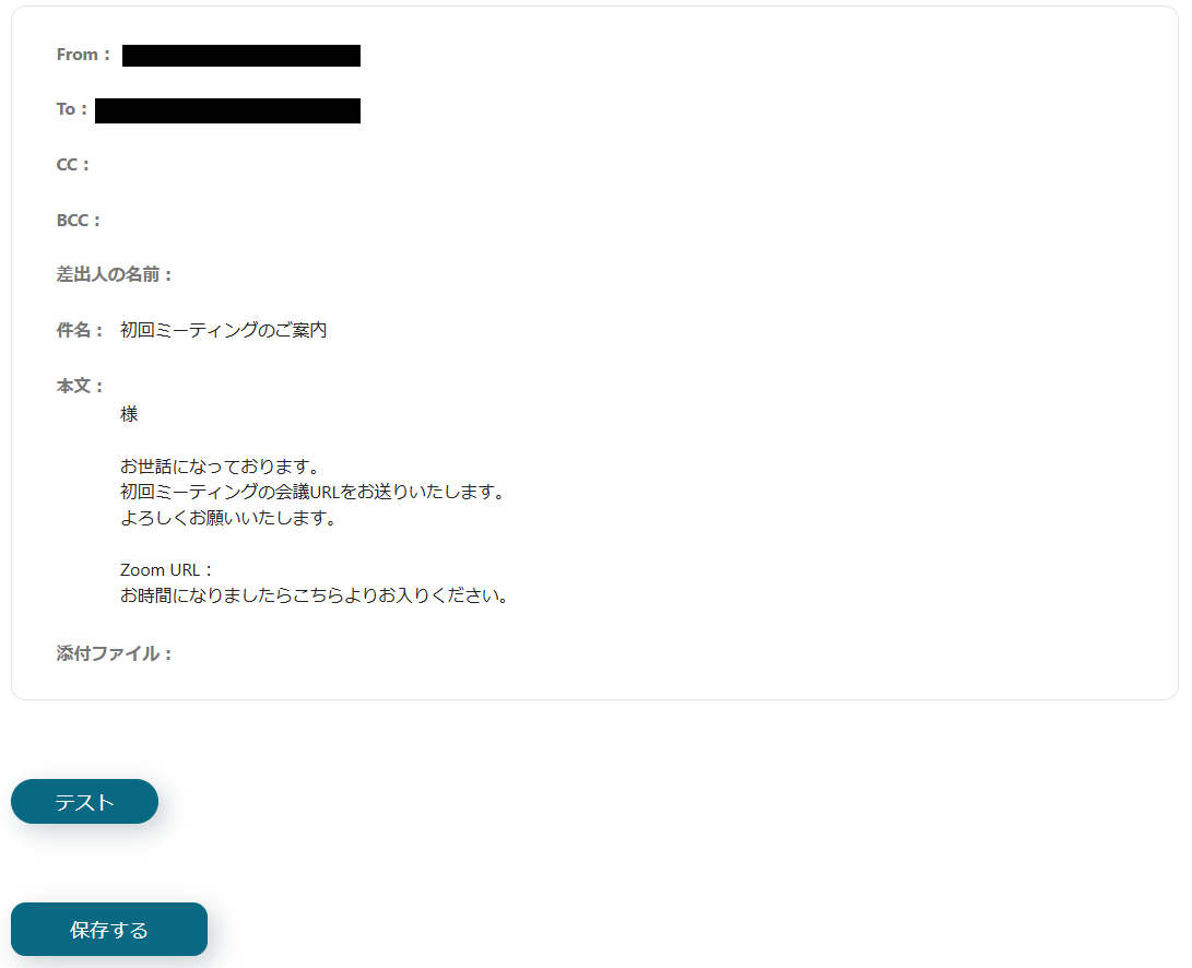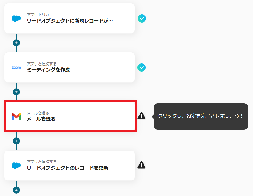 最後に、Zoom会議の連絡をGmailで送信する設定および、ミーティングIDをSalesforceに登録する設定を行います。