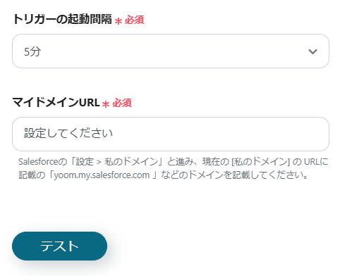 7.リードID、更新するレコード情報、マイドメインURLを設定し、テストを行います。