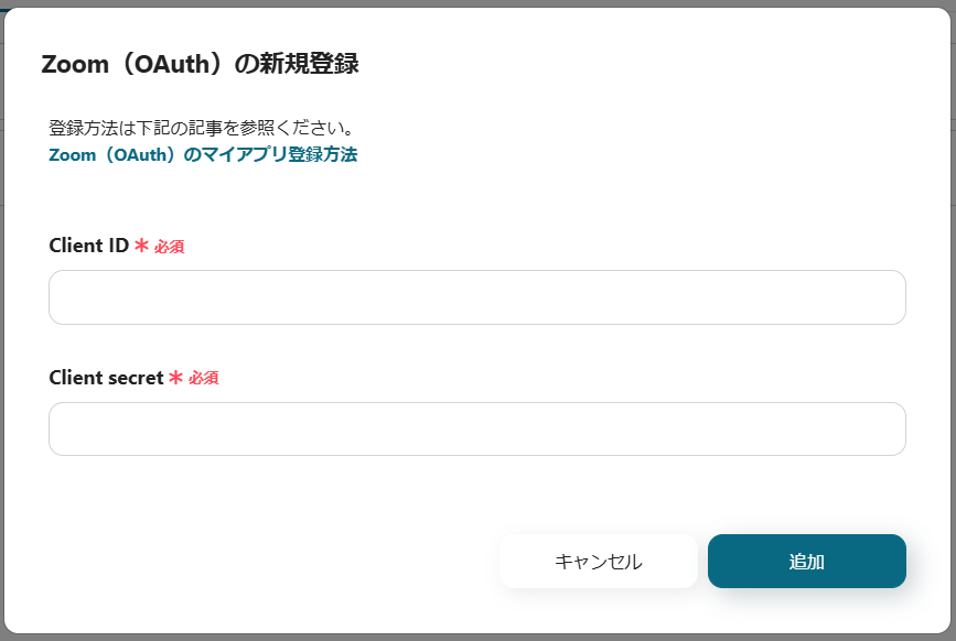 ※ZoomのClient ID、Client secretの取得方法は、こちらのヘルプページで確認できます。