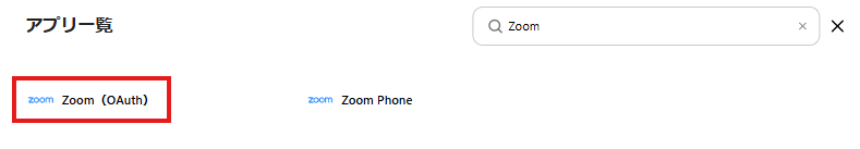 先ほどと同様に、検索窓にZoomと入力し、表示された候補から今回は「Zoom(OAuth)」を選択します。