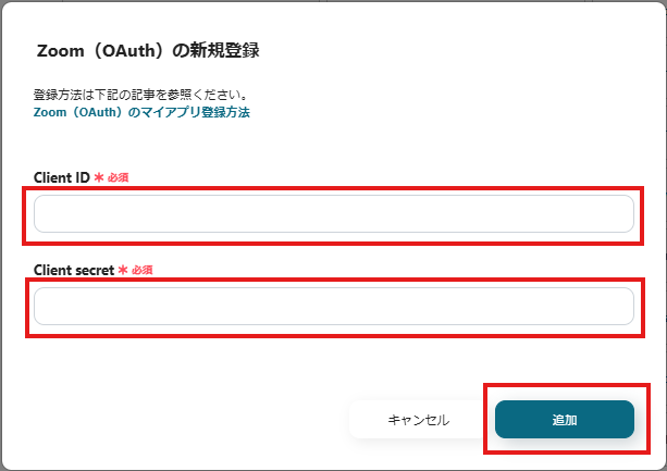 下記画面にClient IDとClient secretを入力し追加しましょう。