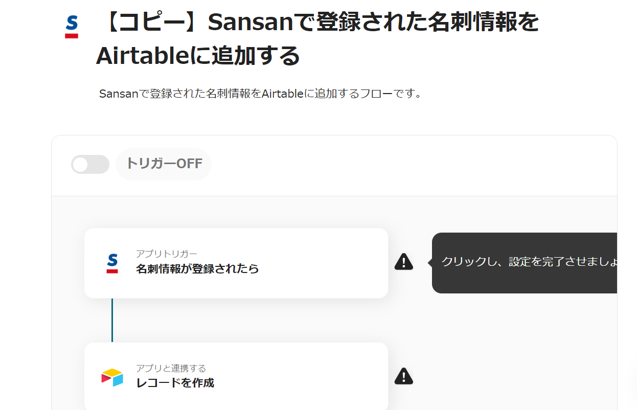 今回は、【Sansanで登録された名刺情報をAirtableに追加する】というフローを作成します。