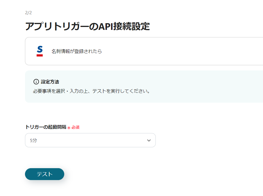 2) トリガーの起動間隔を選択し、「テスト」をクリックします。