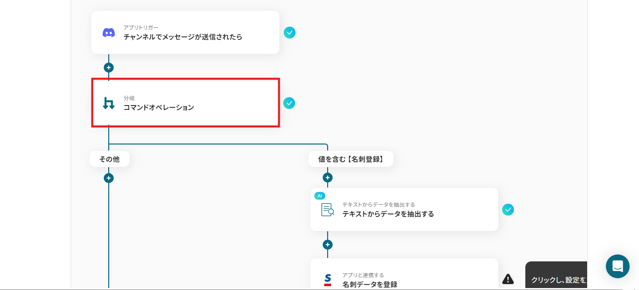 分岐条件で一番右枠に設定したワードがDiscordに含まれていた場合のみ、Sansanに情報を自動登録できます。