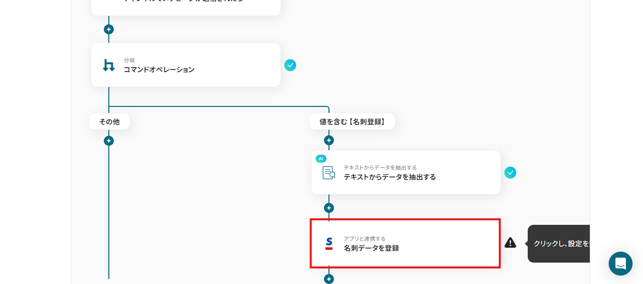 今回は、メッセージの頭に【名刺登録】と入力しているため、下記画面のように設定しています。