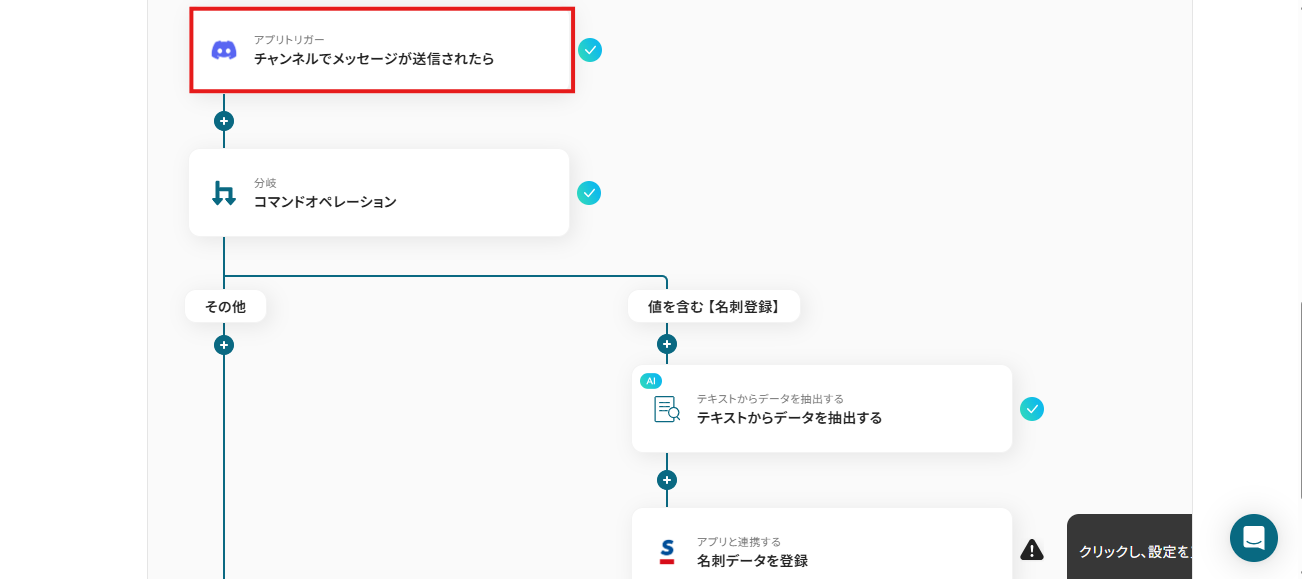 これで、「Discordで送信されたメッセージを元に、Sansanに名刺データを登録する」フローの完成です!