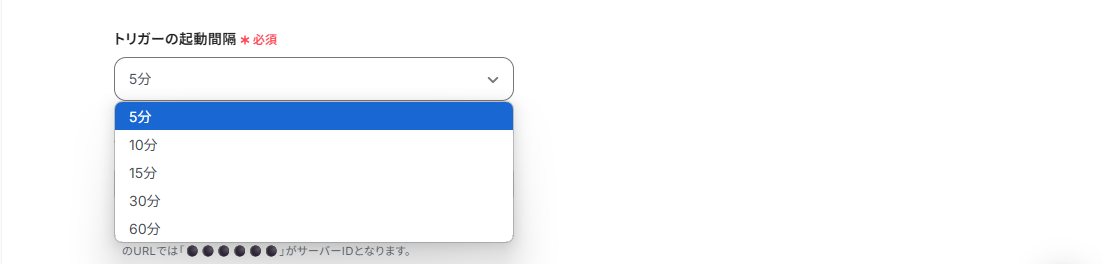 ・トリガーは5分、10分、15分、30分、60分の間隔で起動間隔を選択できます。