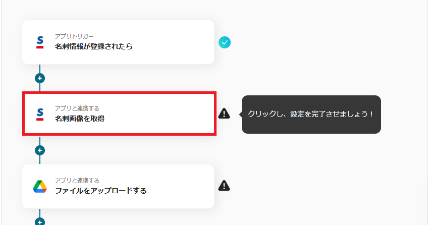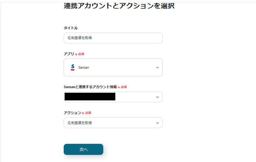 アクションが「名刺画像を取得」であることを確認し、進みましょう。
