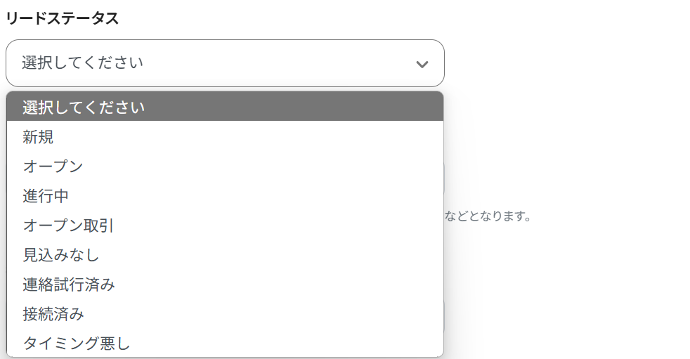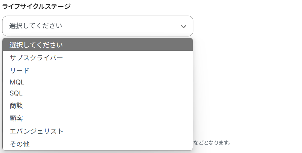 ライフサイクルステージやリードステータスは、以下から選択できます。