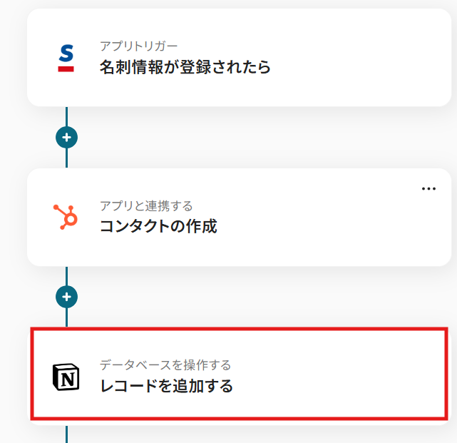 このプロセスを追加することで、Sansanに登録された名刺情報をNotionに蓄積することができます。