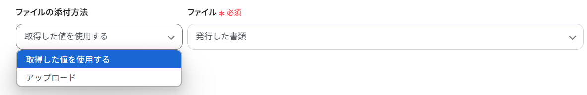 アクションは「ファイルをアップロード」を選択します。