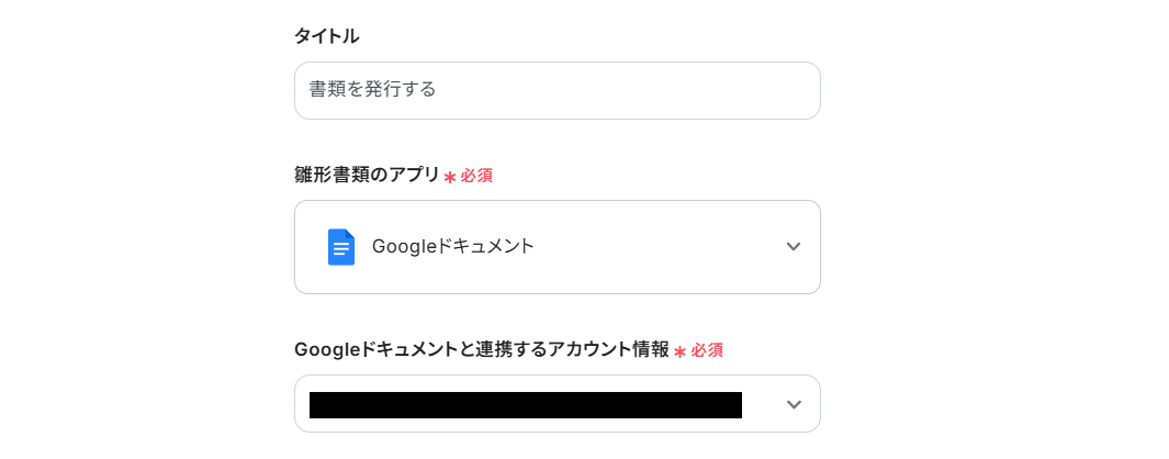 Google ドキュメントと連携するアカウント情報を設定します。
