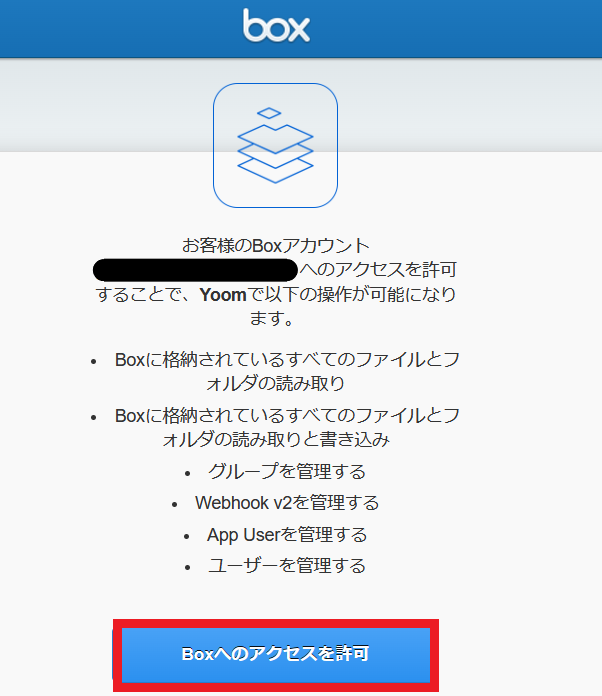 「Boxへのアクセスを許可」をクリックしてください。