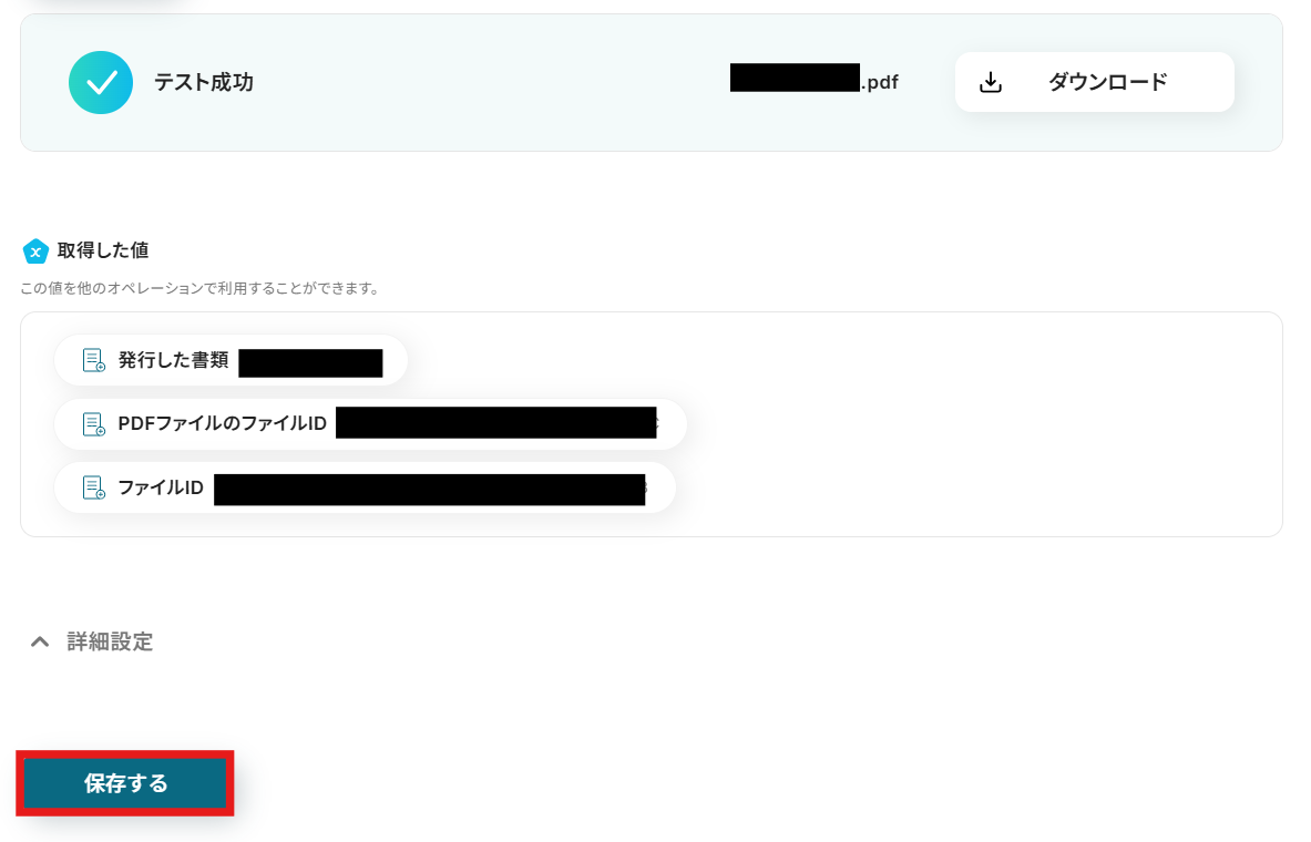 発行したPDFはテスト用にダウンロードしておきましょう。