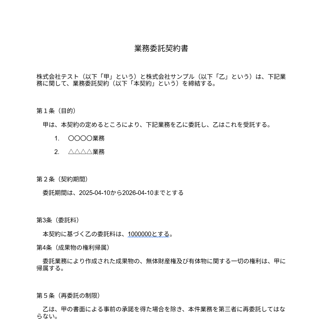 今回は、例として以下のような雛形書類を使用しています。