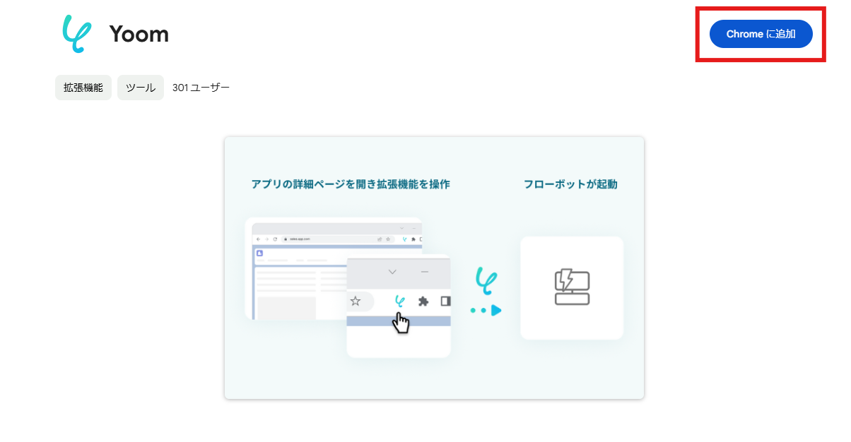 こちらのページから、Google Chromeの拡張機能「Yoom」をインストールしてください。