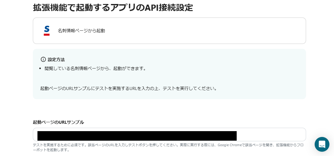 Sansanの名刺情報ページからChrome拡張機能を起動するため、注釈を参考にURLを入力しましょう。
