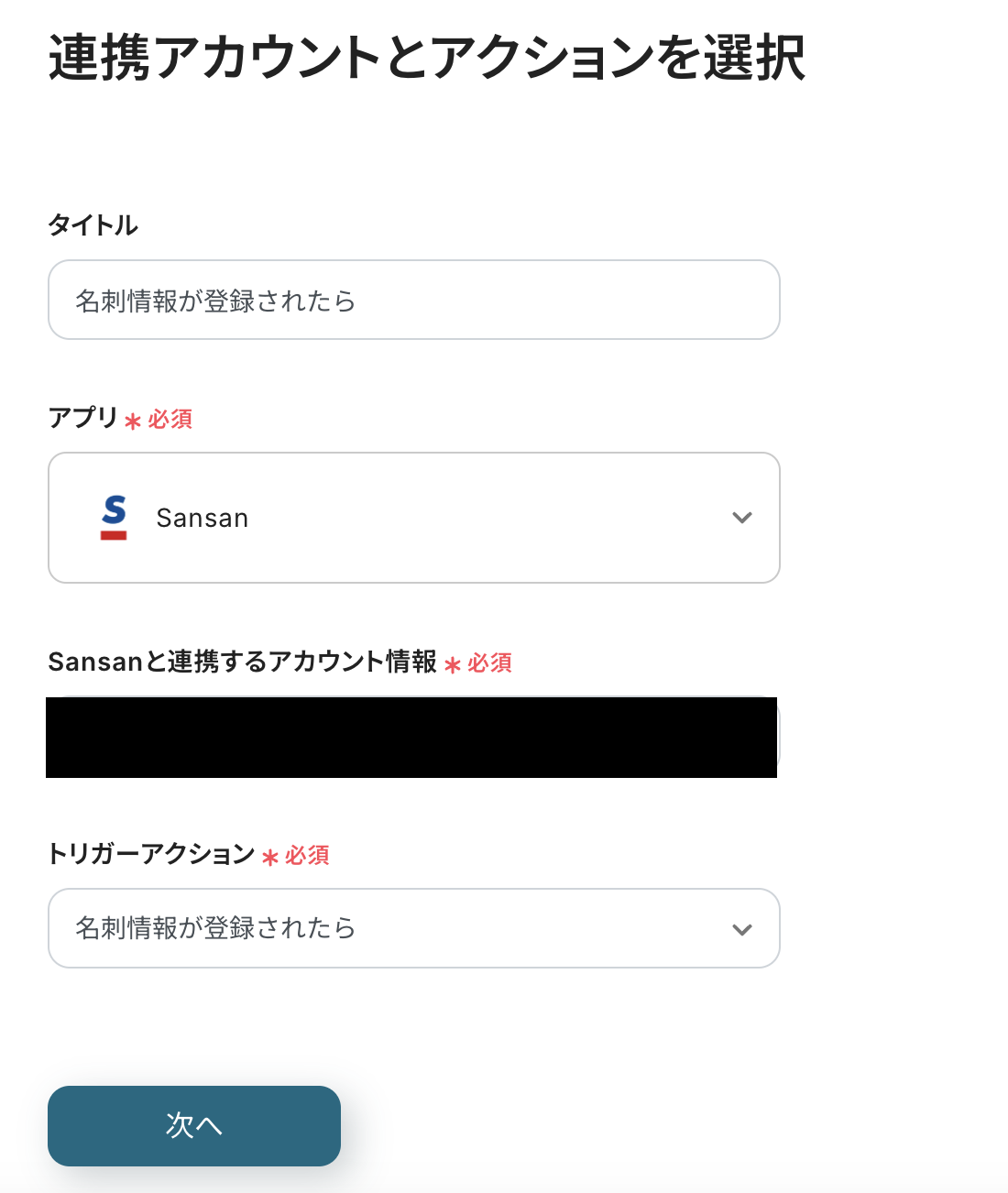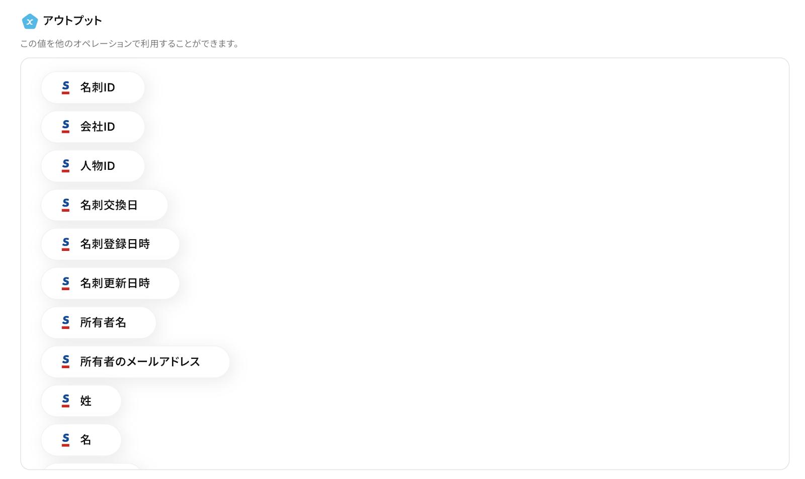 各項目には、Sansanの「名刺情報が登録されたら」からアウトプットを選んでいきましょう!