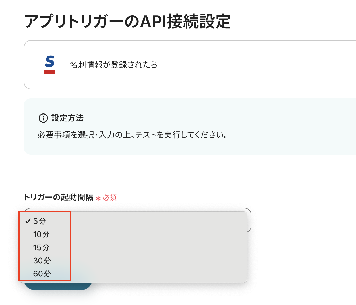 ・トリガーは5分、10分、15分、30分、60分の間隔で起動間隔を選択できます。
