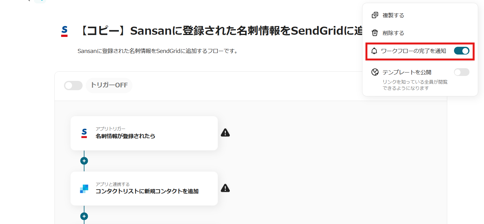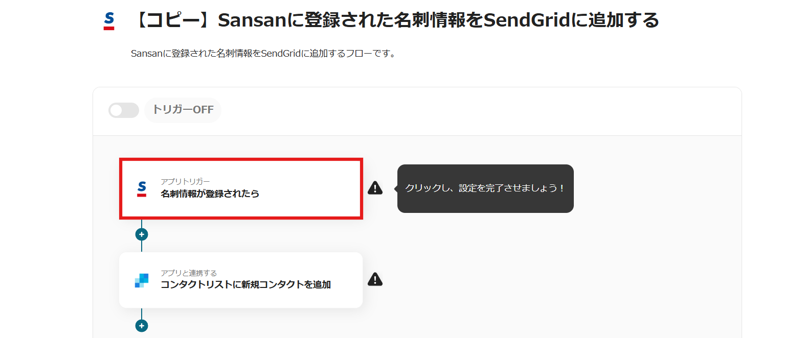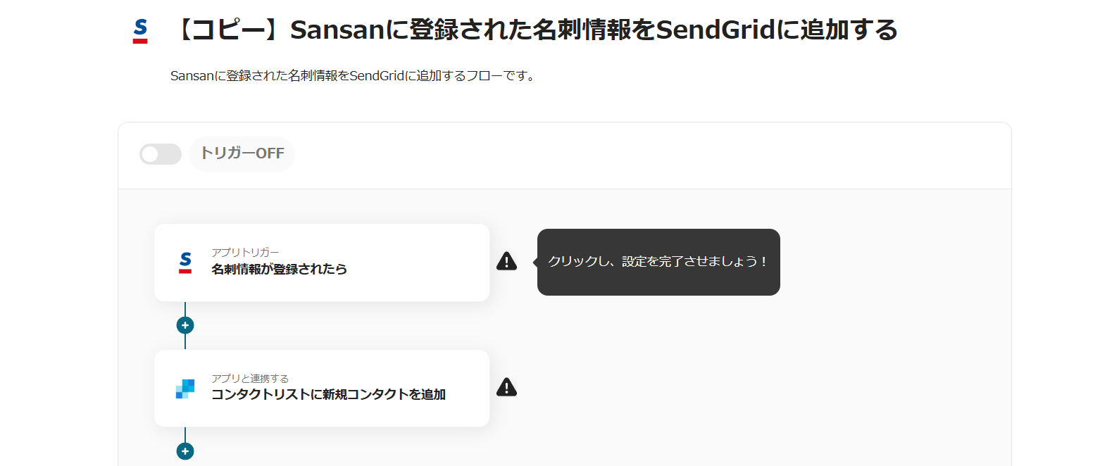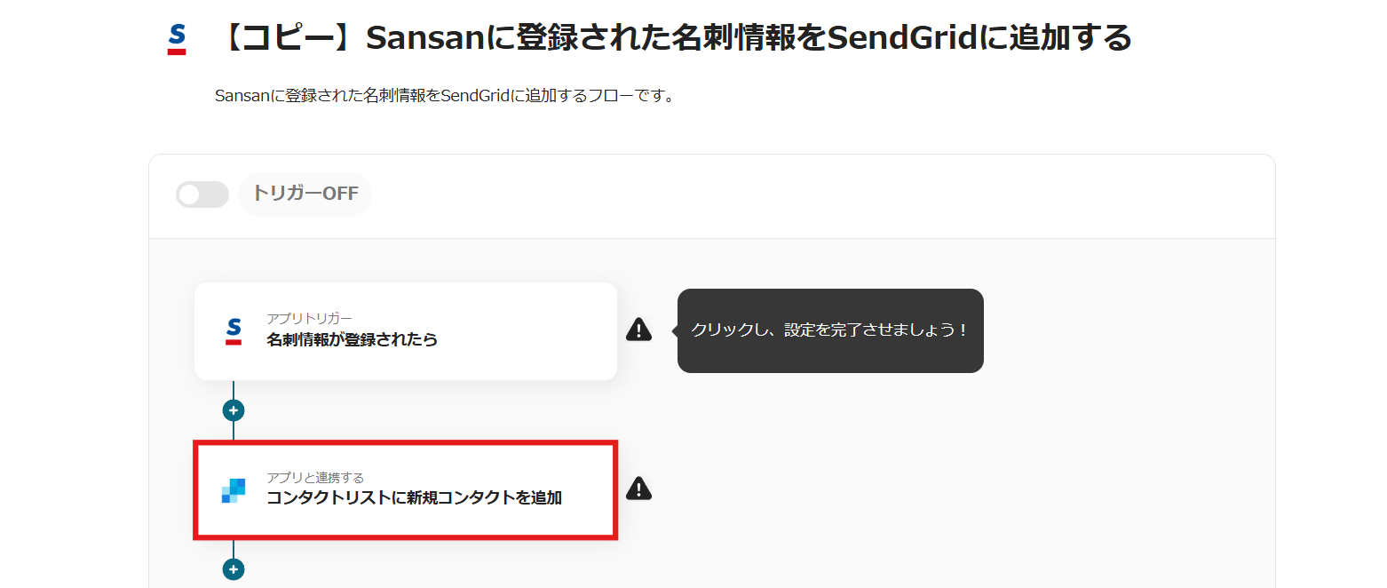 「【コピー】Sansanに登録された名刺情報をSendGridに追加する」をクリックします。