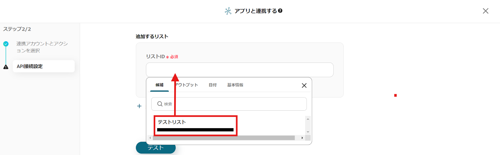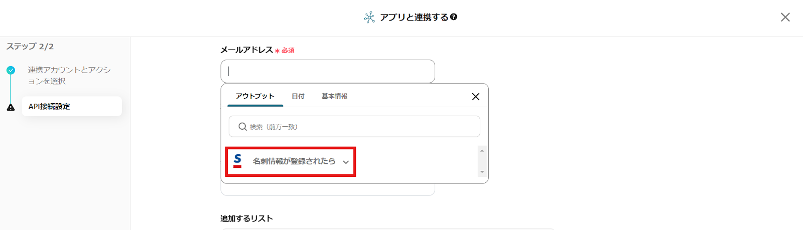 ボックスをクリックすると登録済みのリストが表示されるため、クリックで選択してください。
