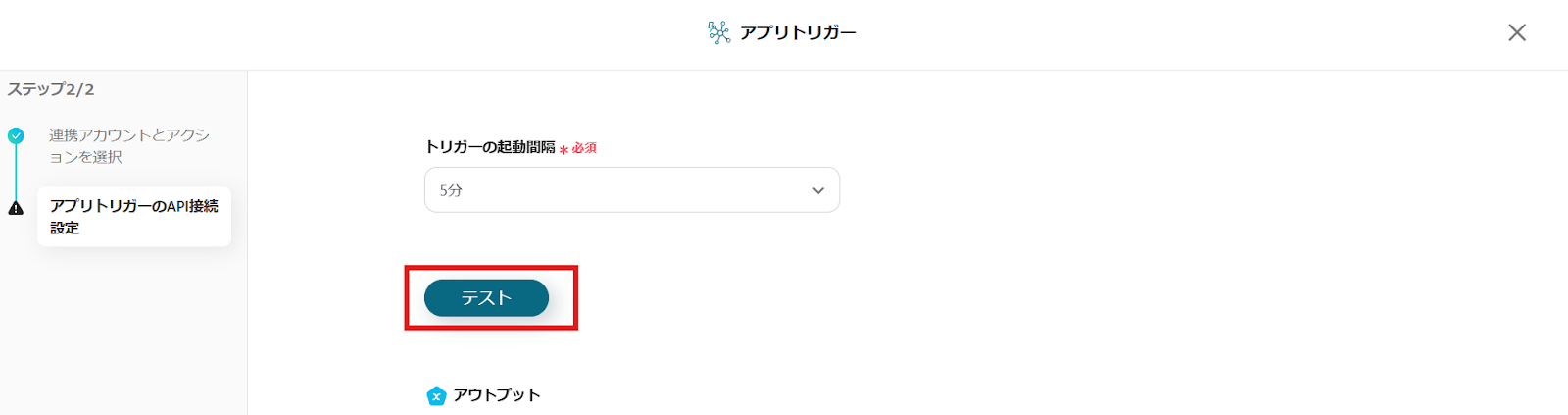 トリガーは5分、10分、15分、30分、60分の間隔で起動間隔を選択できます。