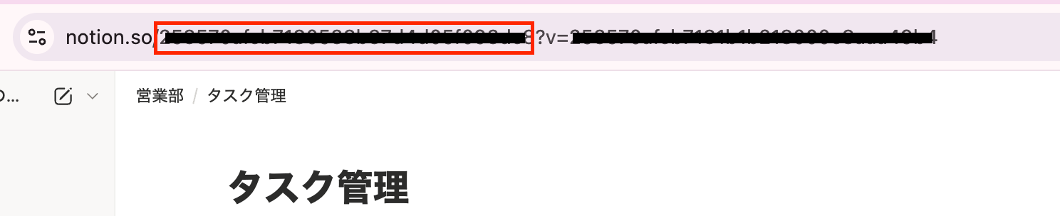 ▼参考:Notion URL内のデータベースID 該当箇所▼