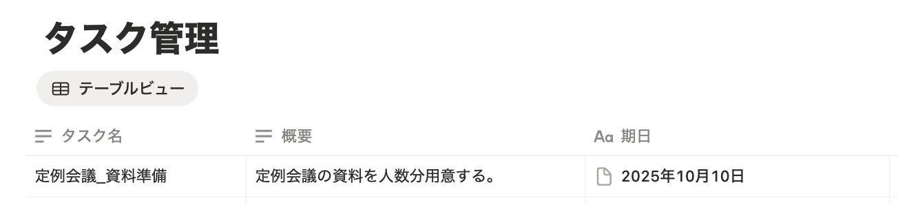 「テスト成功」と表示されたら、実際にNotionにタスクが追加されているかをチェックしてみましょう。