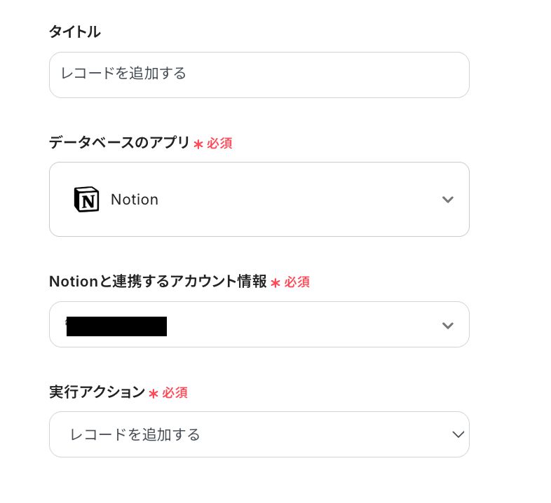 ステップ4:Notionのレコード追加設定