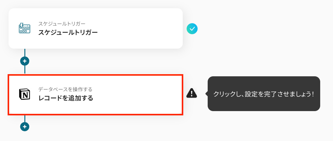 続いて、ステップ3で指定したスケジュールで、Notionに繰り返しタスクを自動追加する設定をしていきます。