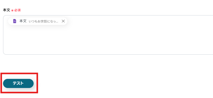 ここまで確認出来たら「テスト」をクリックし、テストが成功したら「保存する」をクリックしてください。