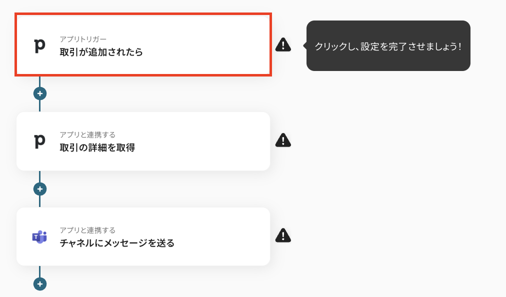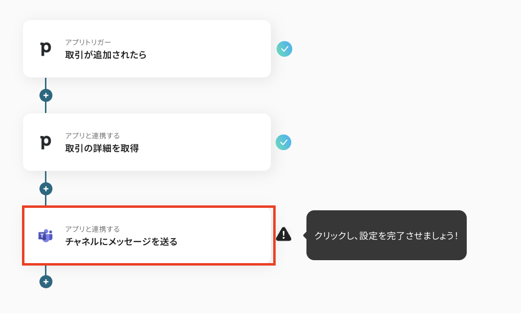 最後に、Pipedriveで追加された取引情報を、Microsoft Teamsに通知する設定を行います。