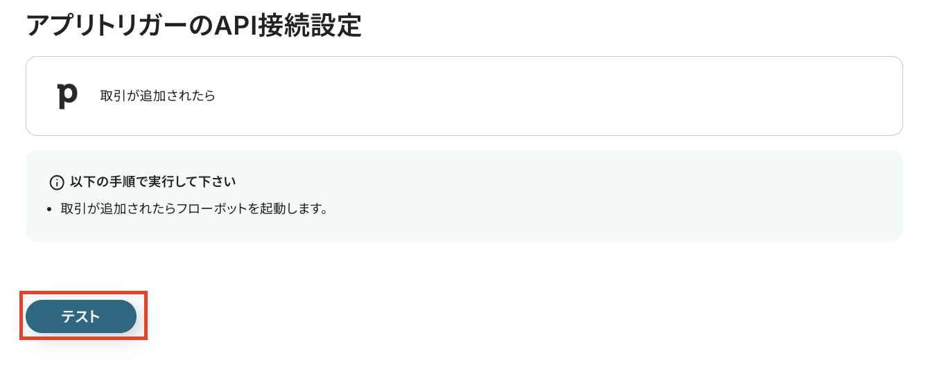 まずは、Pipedriveで取引が追加された際に、フローボットが起動するように設定していきます。
