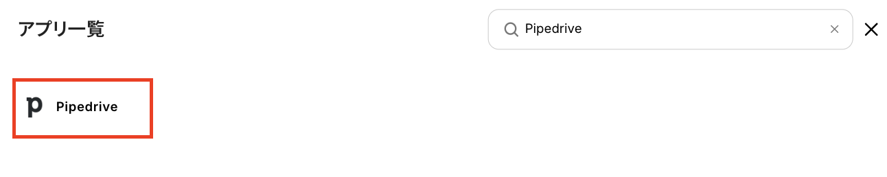 検索窓でPipedriveと入力し、表示された候補からPipedriveを選択します。