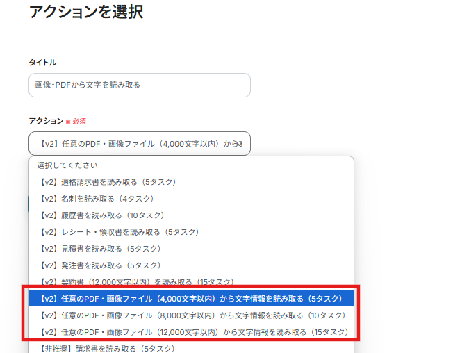 ※OCRは、チームプラン・サクセスプラン限定の機能です。フリープランやミニプランでセットするとエラーになってしまうので、ご注意ください。