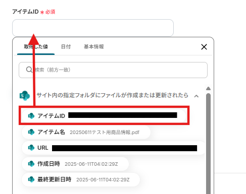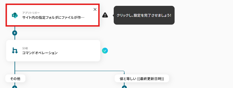 Microsoft SharePointに指定のファイルが作成されたことを、自動化のトリガーにするための設定を行います。