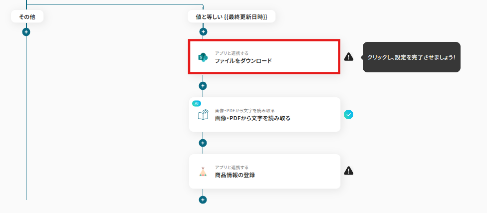 上記のフローに条件分岐を追加し、例えば「特定のカテゴリに属する商品」や「特定の価格帯の商品」がBASEに登録された場合にのみ、SharePointにフォルダを自動作成することが可能です。