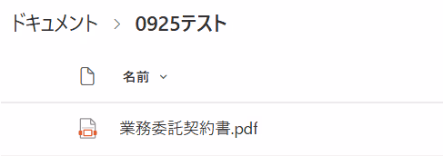 例として、「0925テスト」というフォルダ内に「業務委託契約書.pdf」というファイルを作成しました!