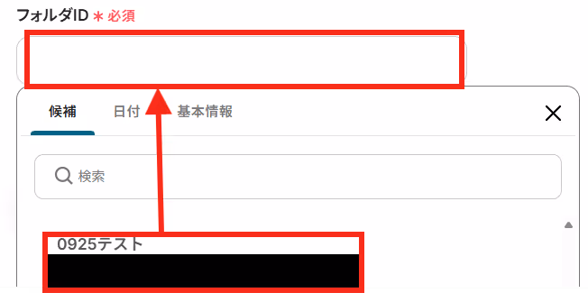 先ほどアップロードした「サイトID」と「フォルダID」を候補から選択しましょう。