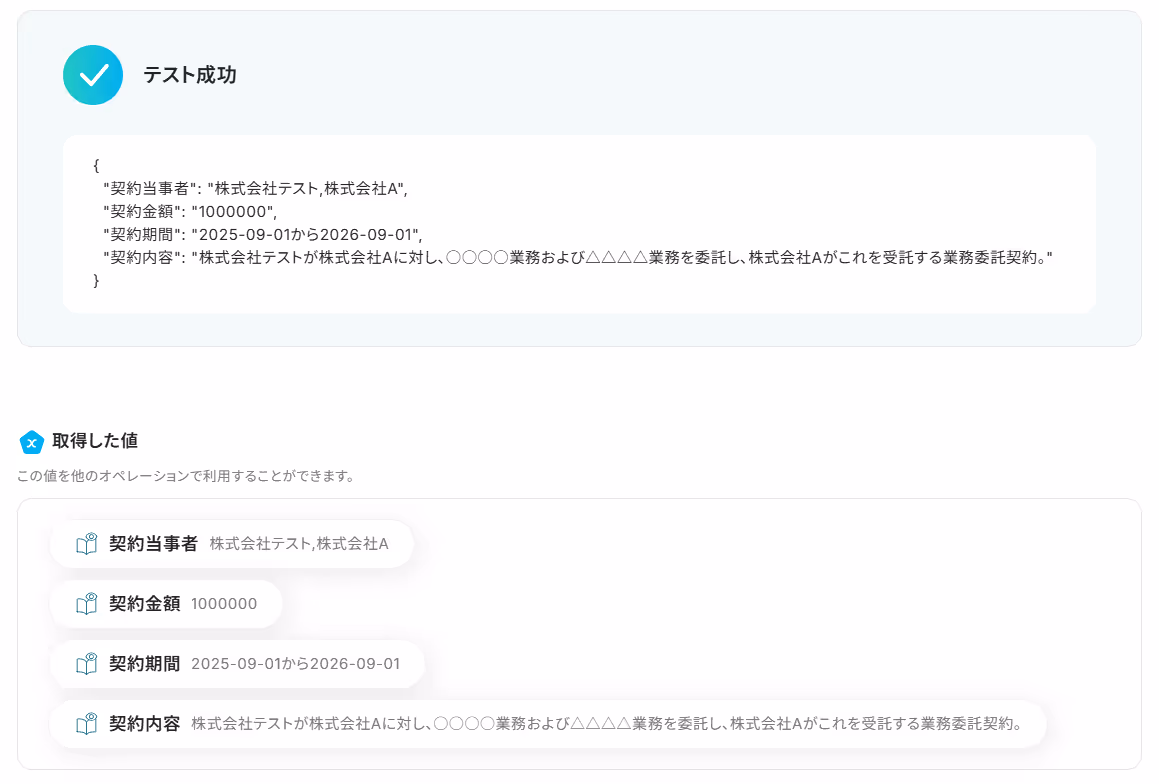 この連携では、OCRによるテキスト抽出に加え、AIによる要約処理も自動で行います。