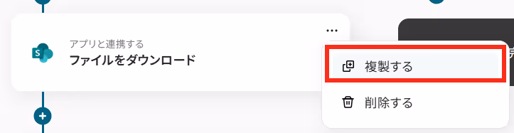 「値を含む.pdf」ではなく、「その他」の直下に各アクションがあるので「複製する」を選択しましょう。