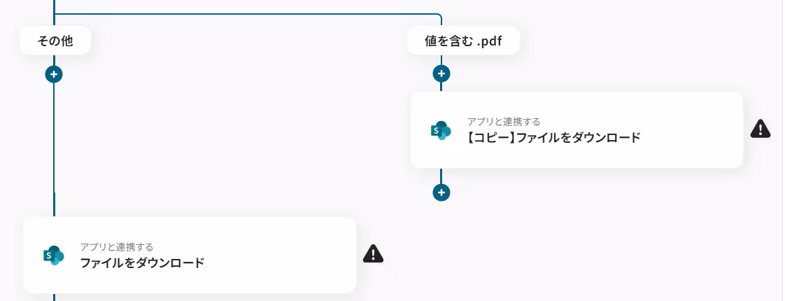 A:可能です!分岐設定をもう一つ追加しましょう。例えば、PDFファイルのみを連携させたい場合、分岐条件を「アイテム名が特定の拡張子(.pdf)を含む場合」に設定することで、実現できます!