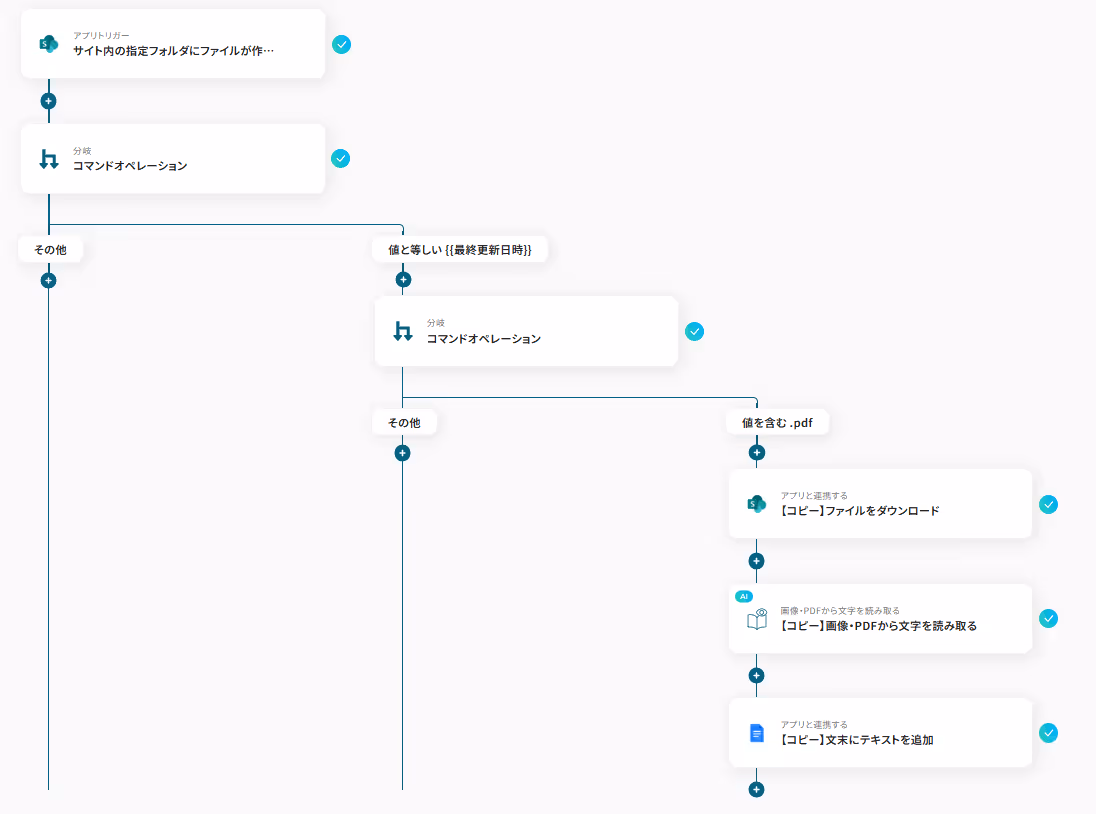 Microsoft SharePointに格納された長文の報告書や議事録の要点を素早く把握したい、という課題はありませんか?この連携では、OCRでテキスト化した内容をさらにAIが自動で要約し、その結果をGoogle ドキュメントに追記します。