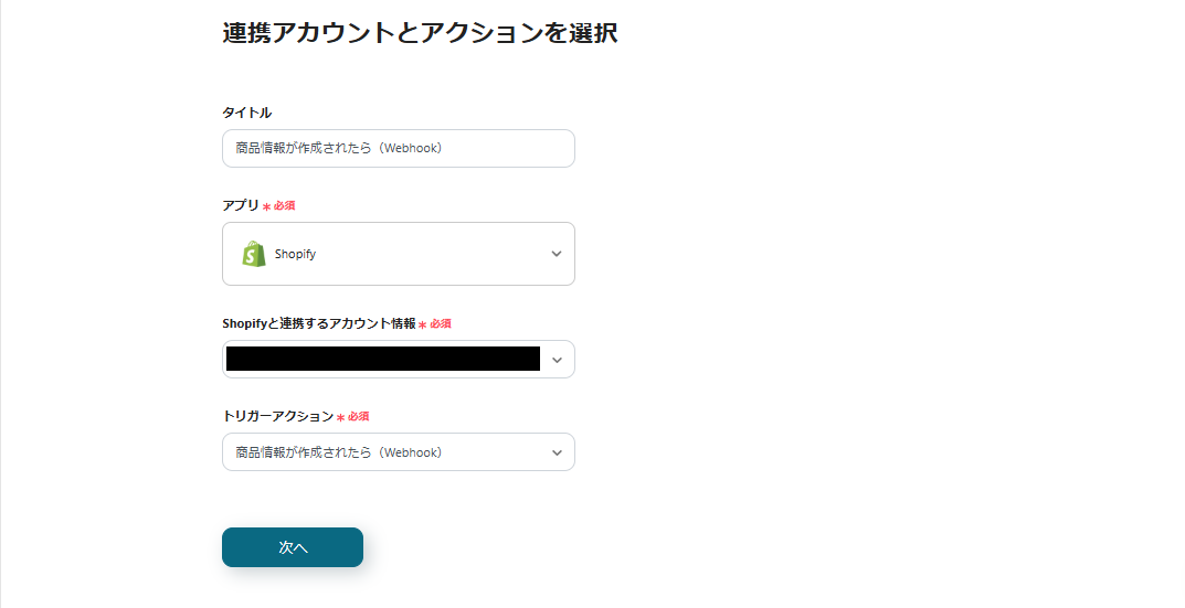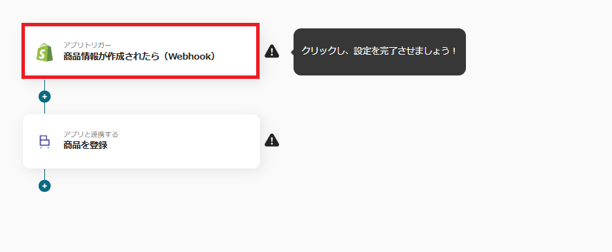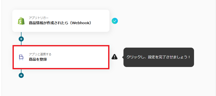 まずは、「商品情報が作成されたら」を設定しましょう。