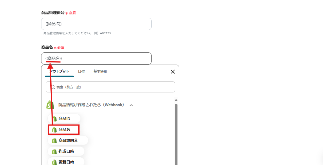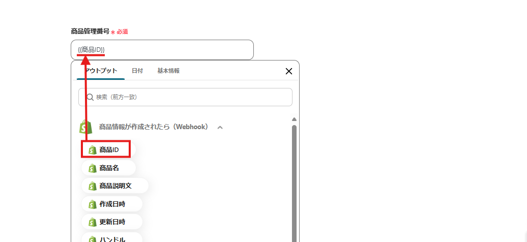 解説)このように設定すると、Shopifyに商品情報を登録したら「商品ID」を取得し、Bカートにも自動で登録することができます。
