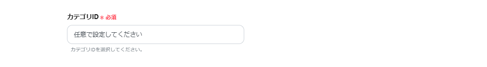 カテゴリIDは、ボックスをクリックすると一覧表示されるため、候補から任意で取得可能です。