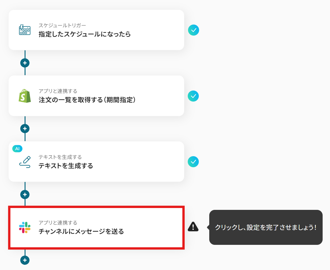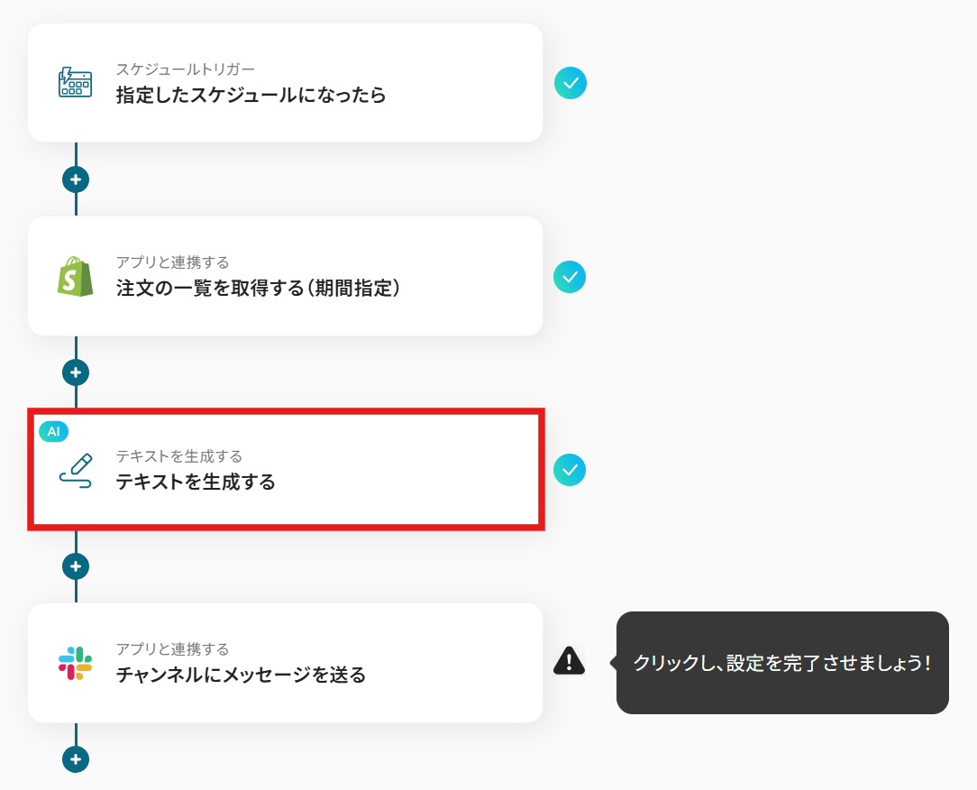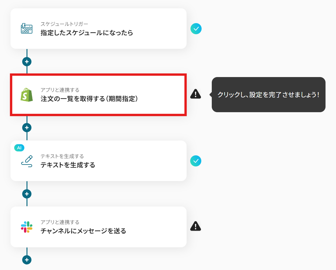 ステップ4:注文情報を取得し、AIに分析・戦略提案を出力させSlackに通知する設定
