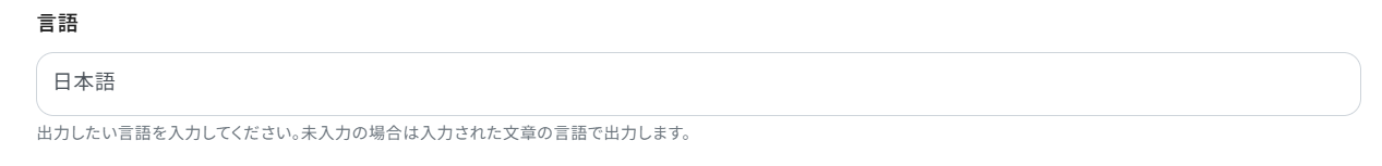 言語:出力したい言語を入力します。今回は言語で出力します。