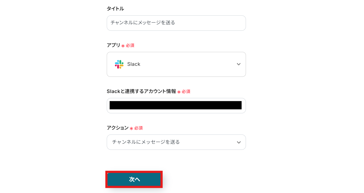 アクションは「チャンネルにメッセージを送る」を選択します。