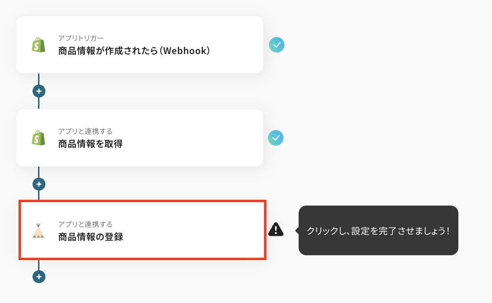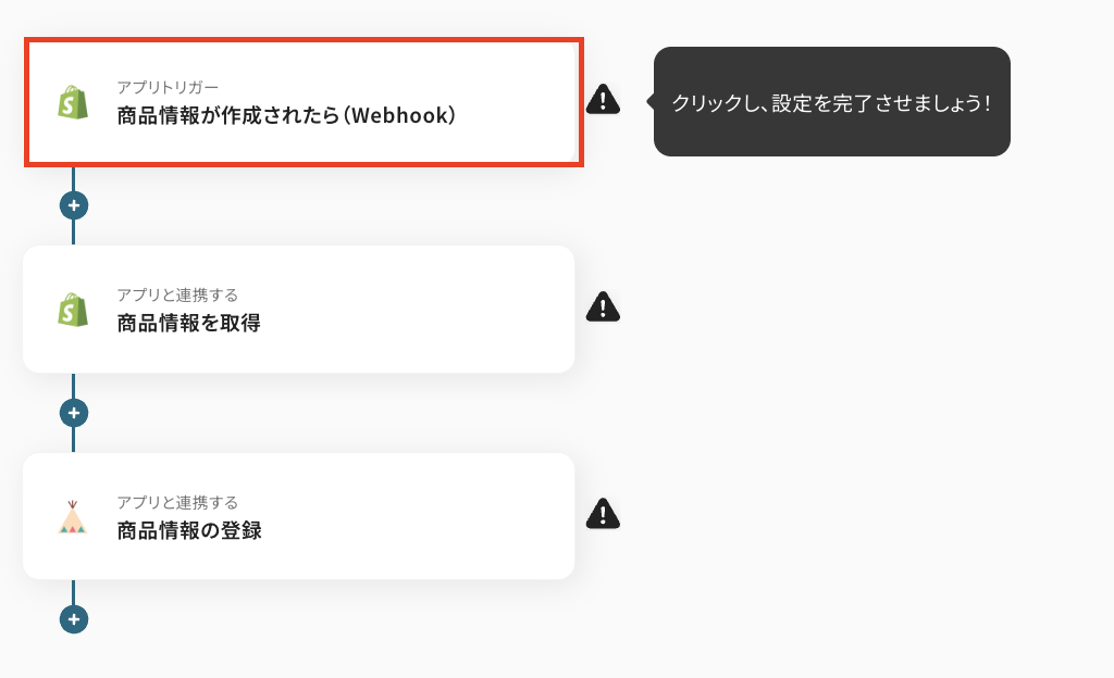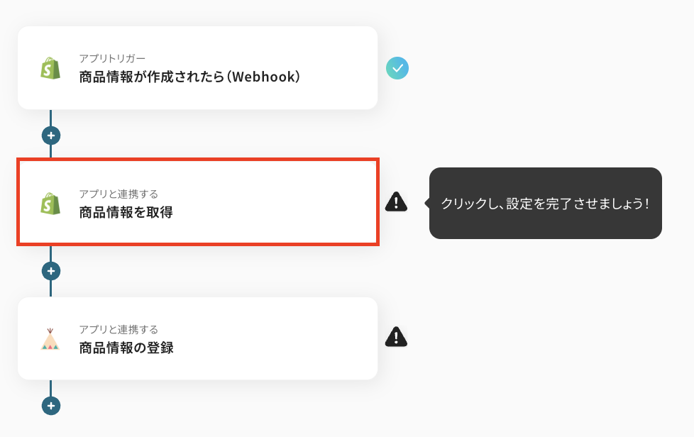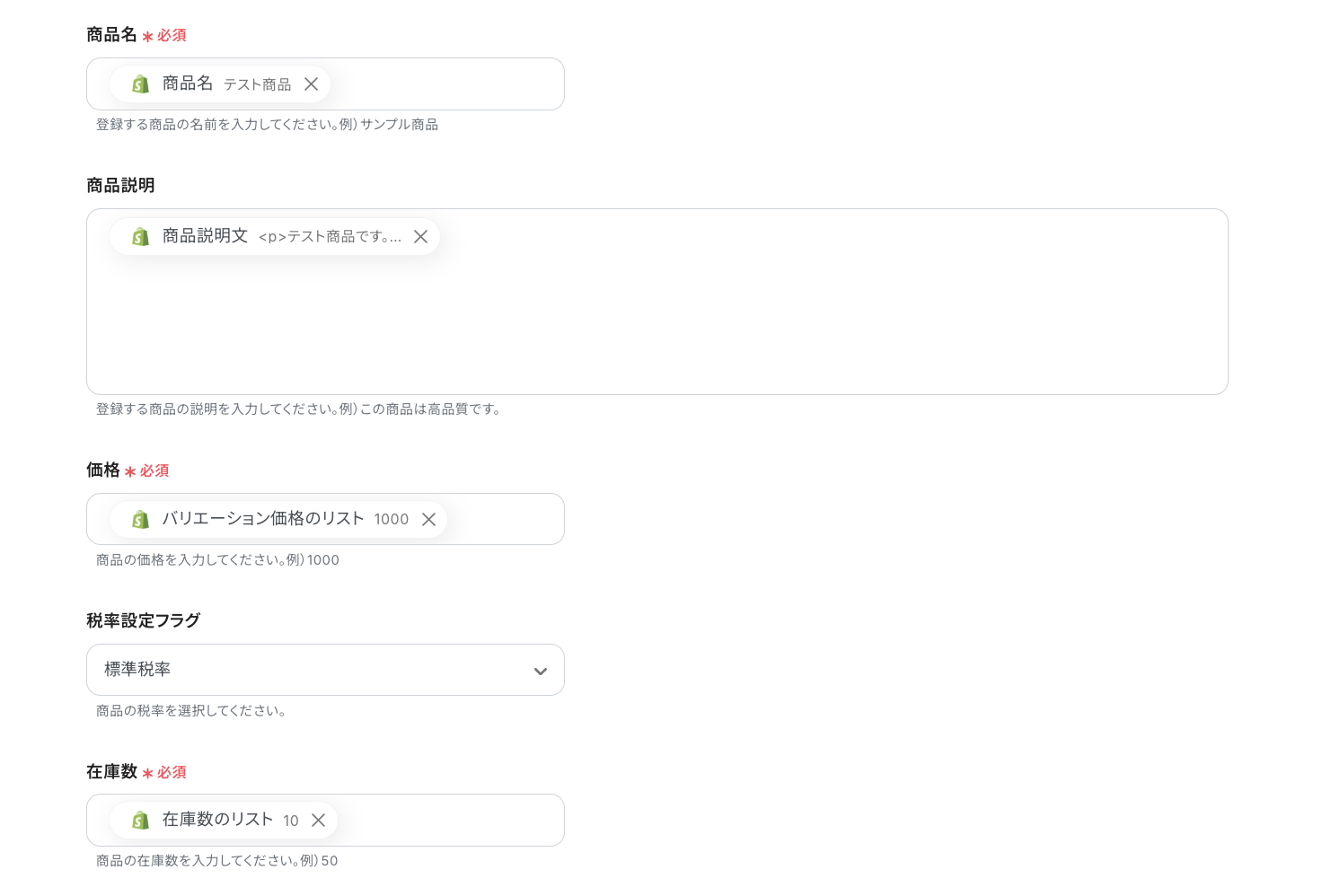 続いて、Shopifyに作成された商品の詳細情報を取得する設定を行います。